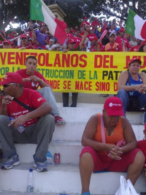 Le nostre immagini mostrano vari punti della concentrazione. Purtroppo, a causa della gran quantità di gente presente, non ci è stato possibile arrivare alla Avenida Bolivar. Le immagini evidenziano chiaramente la quantità di gente presente e della felicità del popolo che non ha perso occasione per ballare e divertirsi.